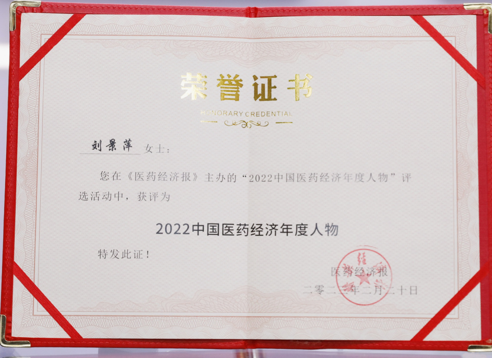 28圈药业集团董事长刘景萍当选“2022中国医药经济年度人物”