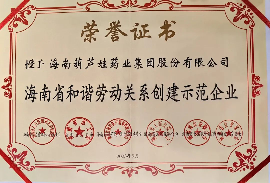 28圈药业集团获评“海南省和谐劳动关系创建示范企业”