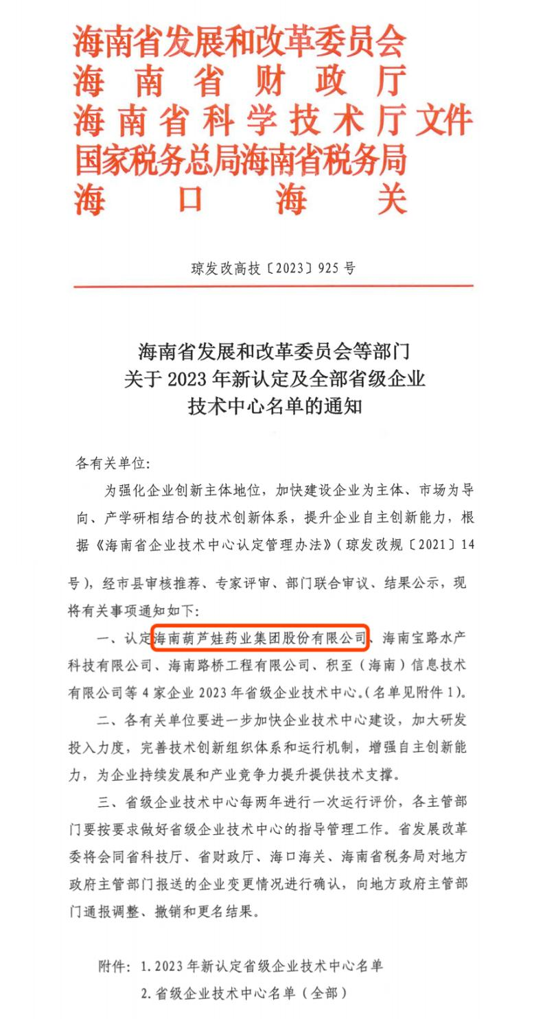 近日,海南省发改委等多部门联合公布了《关于2023年新认定及全部省级企业技术中心名单的通知》,其中,海南28圈药业集团股份有限公司成功通过评审,被认定为省级企业技术中心,是本次获批的4家企业之一。