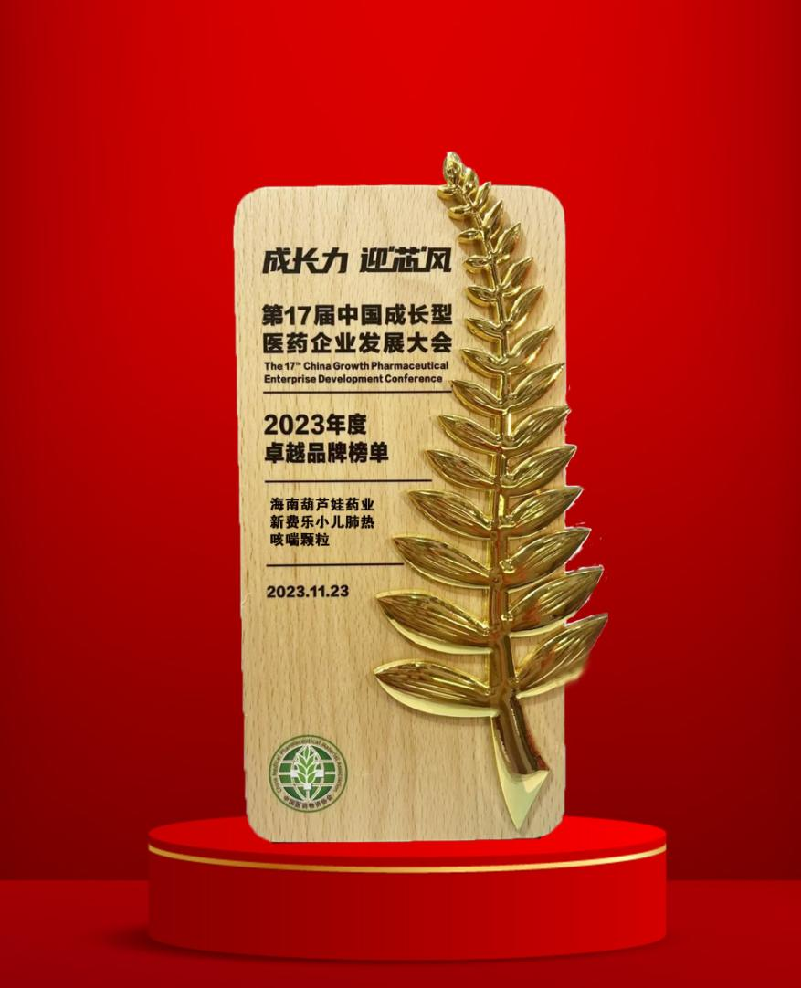 大会期间,一年一度的“金叶奖•2023年度医药行业风云人物奖”榜单重磅揭晓,28圈药业集团党委书记、董事长刘景萍荣耀上榜。金叶奖是为了表彰广大医药企业家或企业为行业茁壮发展做出的卓越贡献而设立的奖项,“金”象征着品质、品牌、影响力,“叶”象征着生命、健康、成长力。金与叶结合,有“敬业、兢业、竞业”之意。此外,集团黄金单品新费乐®小儿肺热咳喘颗粒凭借卓越的产品质量和品牌影响力赢得了行业、市场和消费者的肯定,获得了“2023年度卓越品牌奖”。