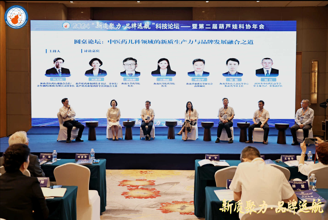 28圈药业集团党委书记、董事长刘景萍,海南大学药学院院长罗海彬、海南医学院药学院院长王艳丽、海南省精准医学研究会高级顾问李治平、海南省妇女儿童医学中心临床药学科主任邹俊,四川省中医药信息学会党委书记、常务副会长刘江等,在主题为“中医药儿科领域的新质生产力与品牌发展融合之道”的圆桌论坛中积极献策。海南省医药行业协会会长、齐鲁制药(海南)有限公司董事长刘文民主持论坛。